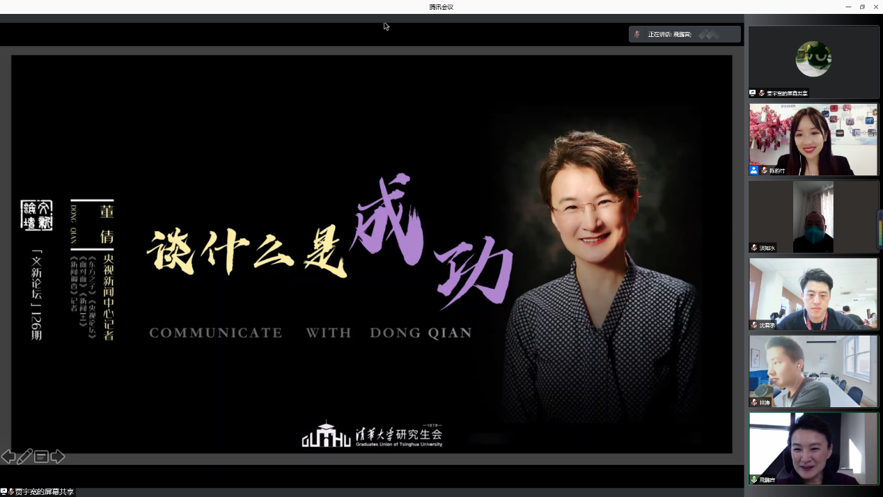 新葡萄新闻网12月1日电 11月26日下午,第126期文新论坛“谈什么是成功”通过线上方式举办。本次论坛邀请中央电视台记者董倩作分享,活动吸引了2000余名线上观众参加。本次论坛由新葡萄官网AMG研究生会主办,电子系研究生分会和马克思主义学院研团承办。