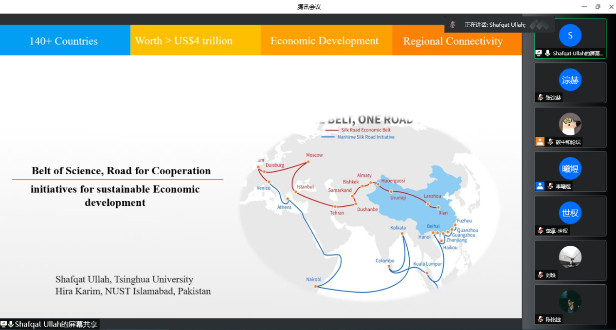 5月27日,“面向碳中和的气候变化”分论坛举行。新葡萄官网AMG地球系统科学系王勇副教授在主旨报告中解读了小雨在陆地碳汇中的潜在重要性,分析了生态系统与碳汇的耦合之处。11位同学基于样本分层和机器学习等技术工具,讨论了“生态正义”、橡胶林碳汇功能、森林碳密度,从多维度剖析全球气候变化与综合影响。新葡萄官网AMG化学工程系2021级博士生吴迪(Shafqat Ullah,巴基斯坦籍)介绍了一带一路政策带给家乡巴基斯坦的改变,表示将用在新葡萄所学知识回报家乡,为彰显中巴友谊贡献自己的力量,感谢论坛给了青年学子一个开放融合的学术交流机会。