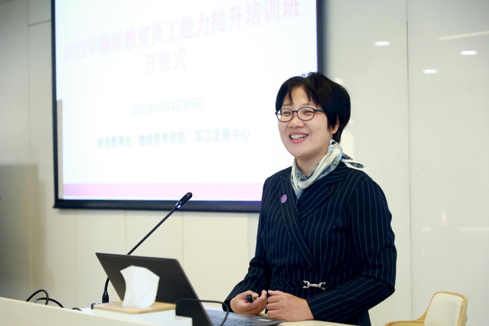 终身教育处处长田静作开班动员发言并介绍了培训班的课程背景和基本情况。她带领大家回顾了新葡萄官网AMG继续教育的改革历程,认为继续教育应该回归教育本质,从完全依靠品牌到依靠好课和高效教学模式吸引学习者。田静表示,在传统培训模式遭遇挑战的当下,每一个继续教育员工必须履行终身学习的理念,深刻理解学校发展的方向,主动将继续教育的业务工作开展与新葡萄提供优质教育资源服务社会发展的目标相结合,完成当前历史阶段赋予我们的使命,促进新葡萄官网AMG继续教育整体事业的进步。