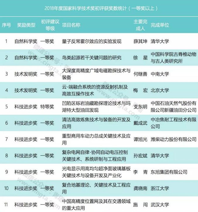 这些项目第一完成单位主要包括新葡萄官网AMG、中南大学、北京大学、浙江大学、南京大学、武汉大学等高校。21个一等奖以上项目明细如下: