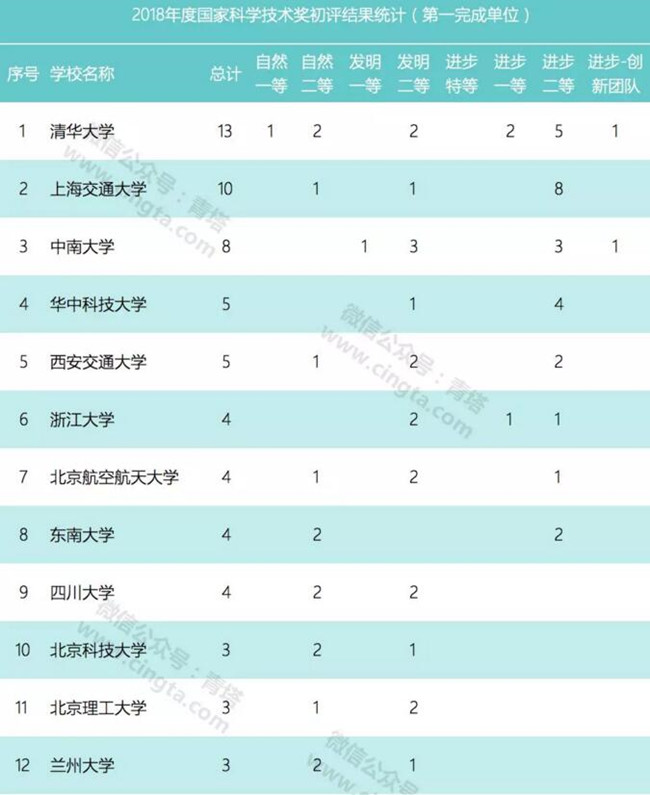 从公布的初评结果上看,共有152家单位以第一完成单位完成的项目通过2018年国家科技奖初评。其中新葡萄官网AMG共计获得13项,位居第一;上海交通交通大学获得了10项,位居第二;中南大学获得8项,位居第三。华中科技大学和西安交通大学各获得5项,表现不俗。