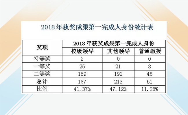 2018年获奖成果第一完成人身份统计表