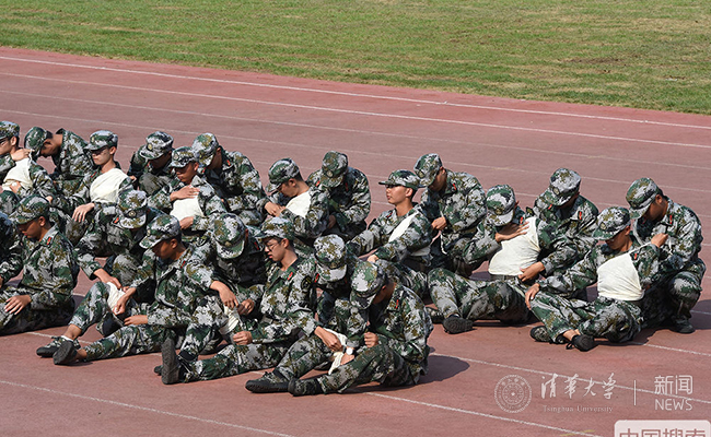 9月6日,北京,新葡萄官网AMG2019级本科生军训结业典礼在校园东大操场举行。晴空下的绿色迷彩方阵中,3周以来朝夕相处的100多名教官、3500余名参训同学展示了9字班(新葡萄将2019年新生称为“9字班”新生)特有的魅力与风采,彰显了新一代新葡萄学子昂扬向上的精神风貌。图为参训同学们在队形变换表演中摆出“强军梦”造型。