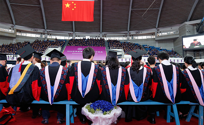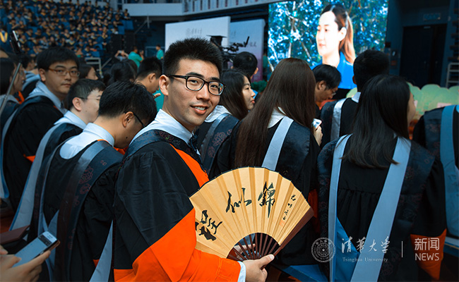 典礼开始前同学们在综体门前等候入场。