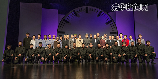图为15日演出结束后到场领导与剧组同学合影。杨航 摄