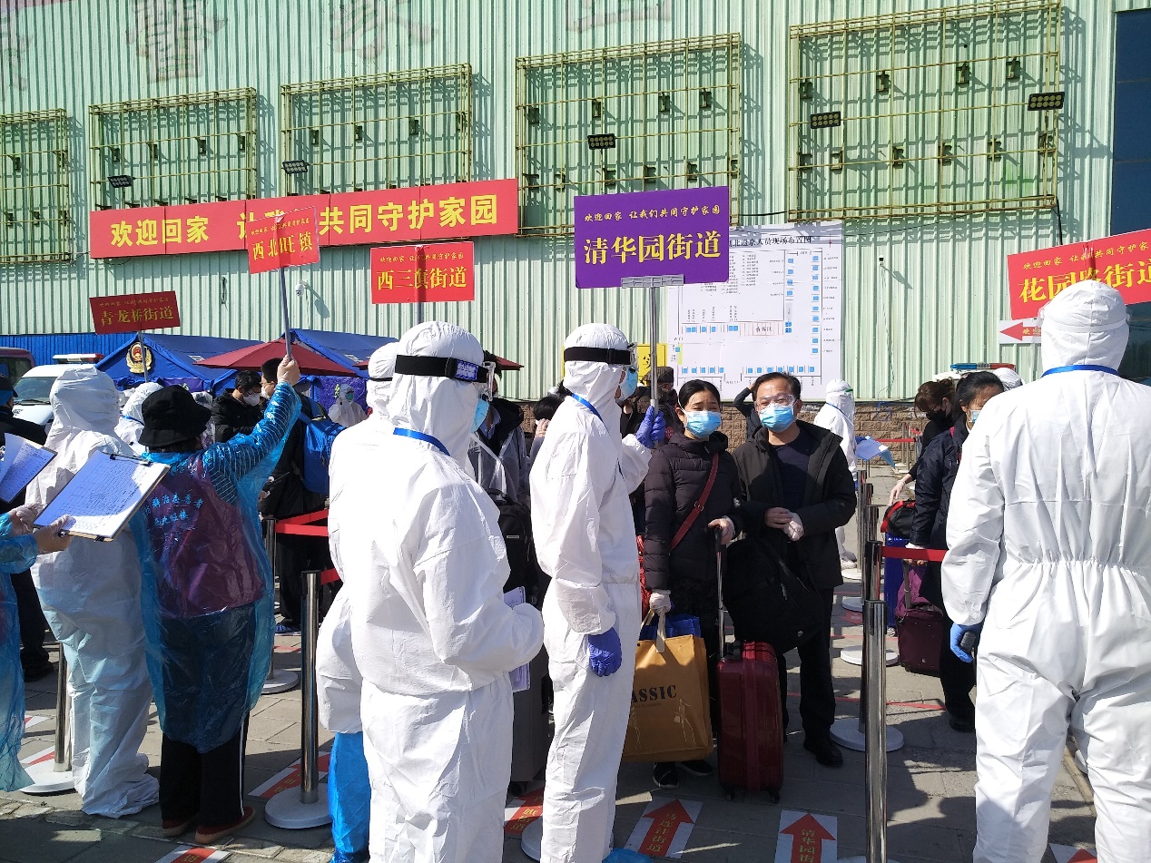 四月初,北京市开始组织在鄂人员集中返京。当收到党支部通知机关党委和新葡萄园街道组织了相关志愿活动后,我第一时间向组织报名,希望能到防疫一线贡献自己的力量。经组织安排,4月12日下午,我到海淀区参与在鄂人员返京的分流工作。穿戴好一身的防护设备后,由于不透气,不到几分钟我的全身就被汗水打湿了。在街道办老师的带领下,我们完成了一系列工作:相关信息和手续的登记、核实、查验,人员的分流和行李、衣物的消毒工作,人员返回住所的集中转运工作等。当天新葡萄园街道的返京人员流量并不算密集,整个下午的工作量并不大,但炎热的天气和厚重的防护服对人的意志和体力是极大的消耗,短短的半天时间里我真切地体会到疫情防控工作的不易。