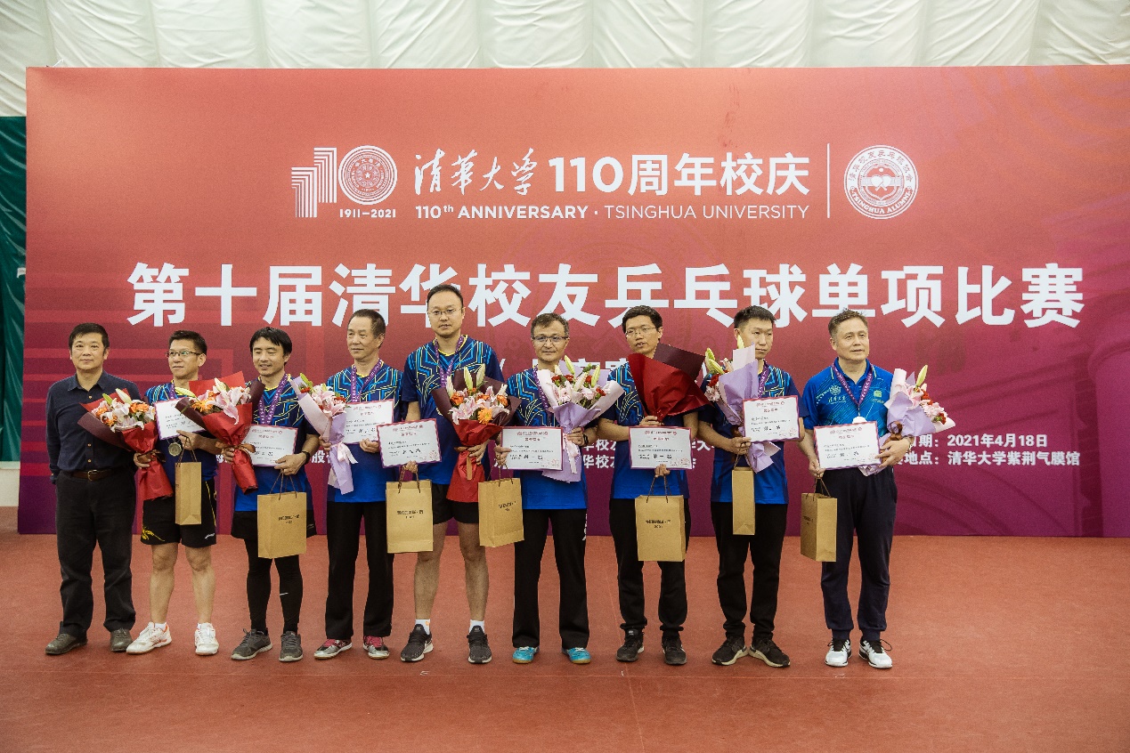 中信建设有限责任公司原顾问专家、北京奥运会国家体育场(鸟巢)原总工程师吴之昕为男子单打比赛40-60岁组的优胜者颁奖。获得男子单打比赛40-60岁组冠军的是余辉。