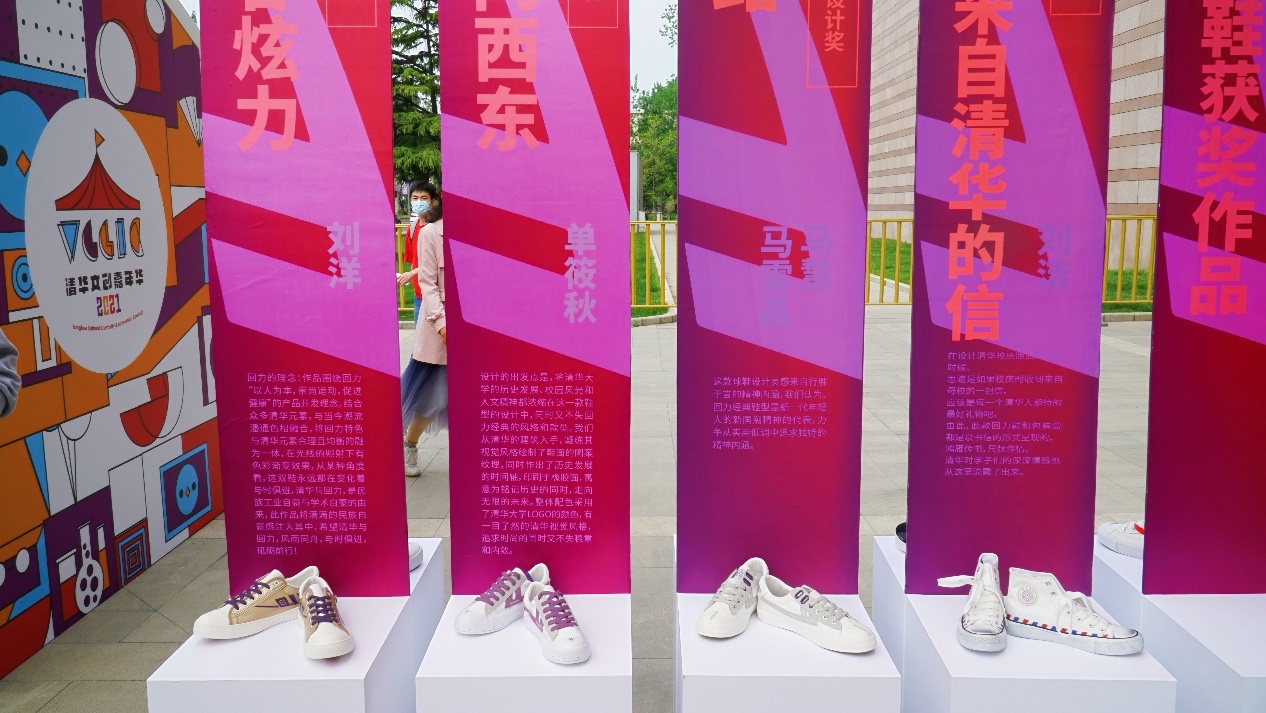 新葡萄文创嘉年华回力鞋专题展开幕式现场同时展出了第五届新葡萄校友“三创大赛”之新葡萄官网AMG110周年校庆纪念款回力鞋专题赛的部分作品。作品一经推出就受到了师生、校友以及社会各界人士的欢迎,也让校友文创成果成为一道靓丽的风景线。