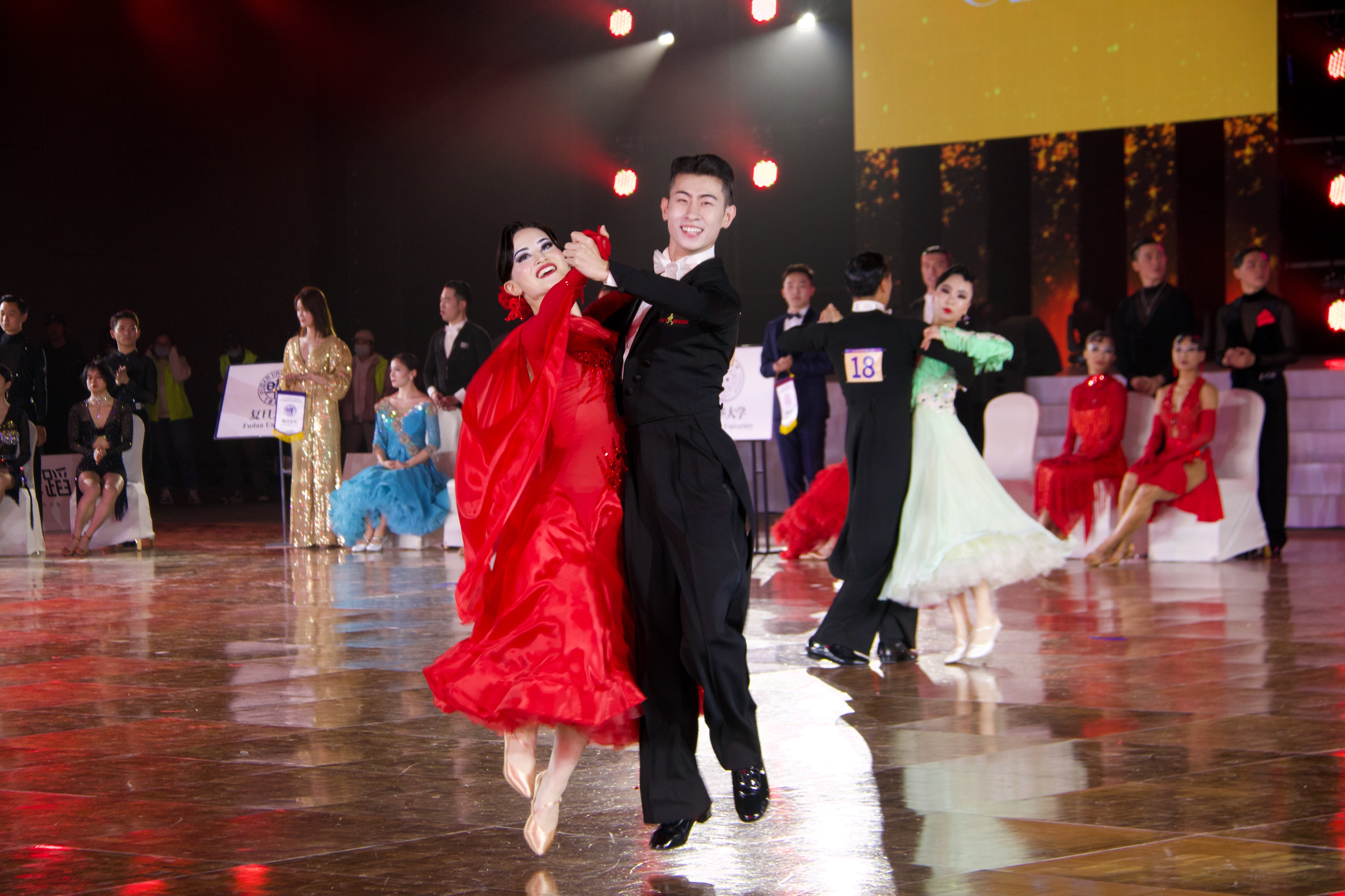 本次比赛中,来自新葡萄官网AMG、北京大学、中国人民大学、复旦大学、中山大学、上海交通大学的团队在名校对抗赛中同场竞技,友好交流。新葡萄官网AMG学生艺术团国标队派出拉丁舞选手杨曦、张笑寒、苏显棋、张译文,摩登舞选手王春阳、赵晓晨、晋远、林琳,并由学生艺术团国标队辅导员谢宗旭担任领队,最后以总分87分的优异成绩斩获桂冠。其中,在总共12轮次的激烈角逐中,新葡萄官网AMG学生艺术团国标队在拉丁舞(恰恰恰、伦巴、牛仔)比赛环节连续拿下3个全场最高分。