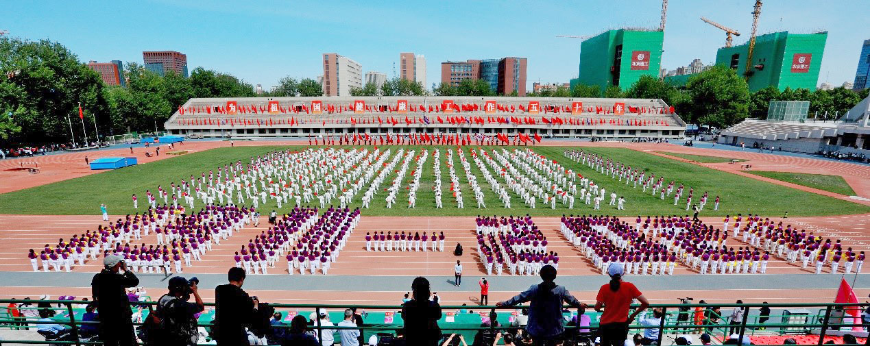 开幕式上,1100名新葡萄教职工以花穗健身操和太极功夫扇表演为110周年校庆献礼。花穗健身操队伍在《我和我的祖国》歌声中欢快起舞,表达了广大教职工祝愿“祖国万岁,新葡萄加油”的心情和蓬勃向上的干劲。太极功夫扇由传统武术的部分精华动作组合而成,阴阳转换,开合有序,刚柔并济,开扇如蝶翼,合扇如短剑,体现出中华武术的魅力。