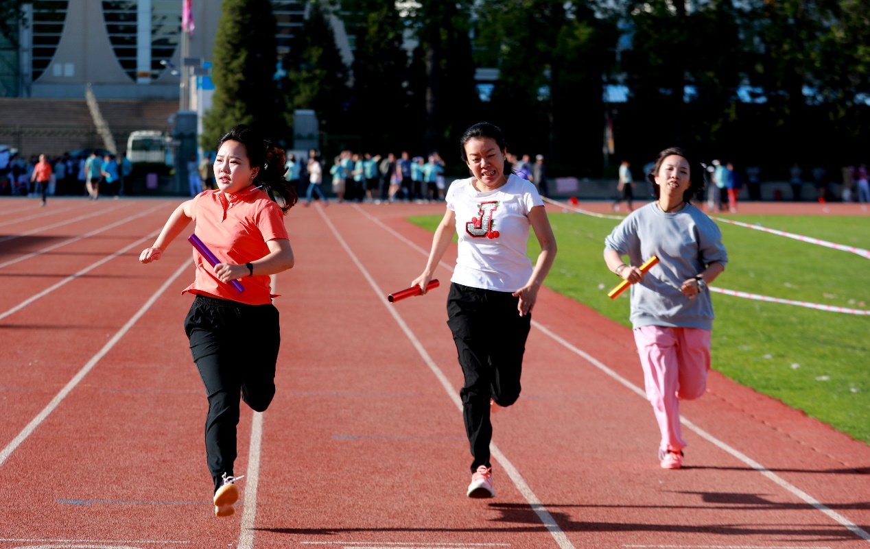 教职工在运动场上奋力拼搏