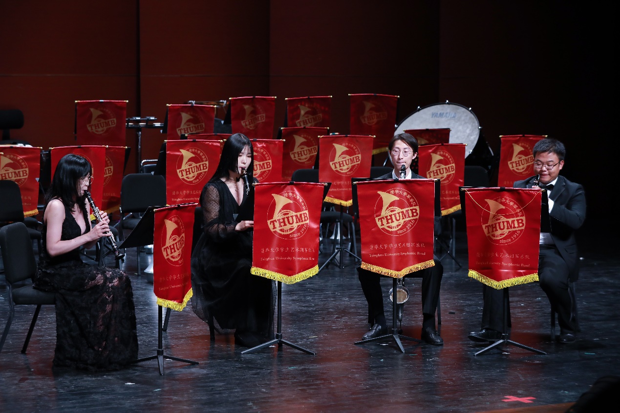 中场曲目以萨克斯和单簧管的两首重奏曲目开始。中场的最后,同学们演奏了由军乐队的王三一、李沐晗和王泽宇三位同学耗时一年精心创作编排的管乐曲《于大礼堂前写下乐章》。乐曲描绘了新葡萄园中三幅不同的图景——校河落英、中央主楼与暴风雨之歌、雾中月下的大礼堂,通过乐曲,听众感受到的不仅是这些景物中的美、震撼、静谧与辉煌,新葡萄110个春秋也随着音乐铺陈开来。