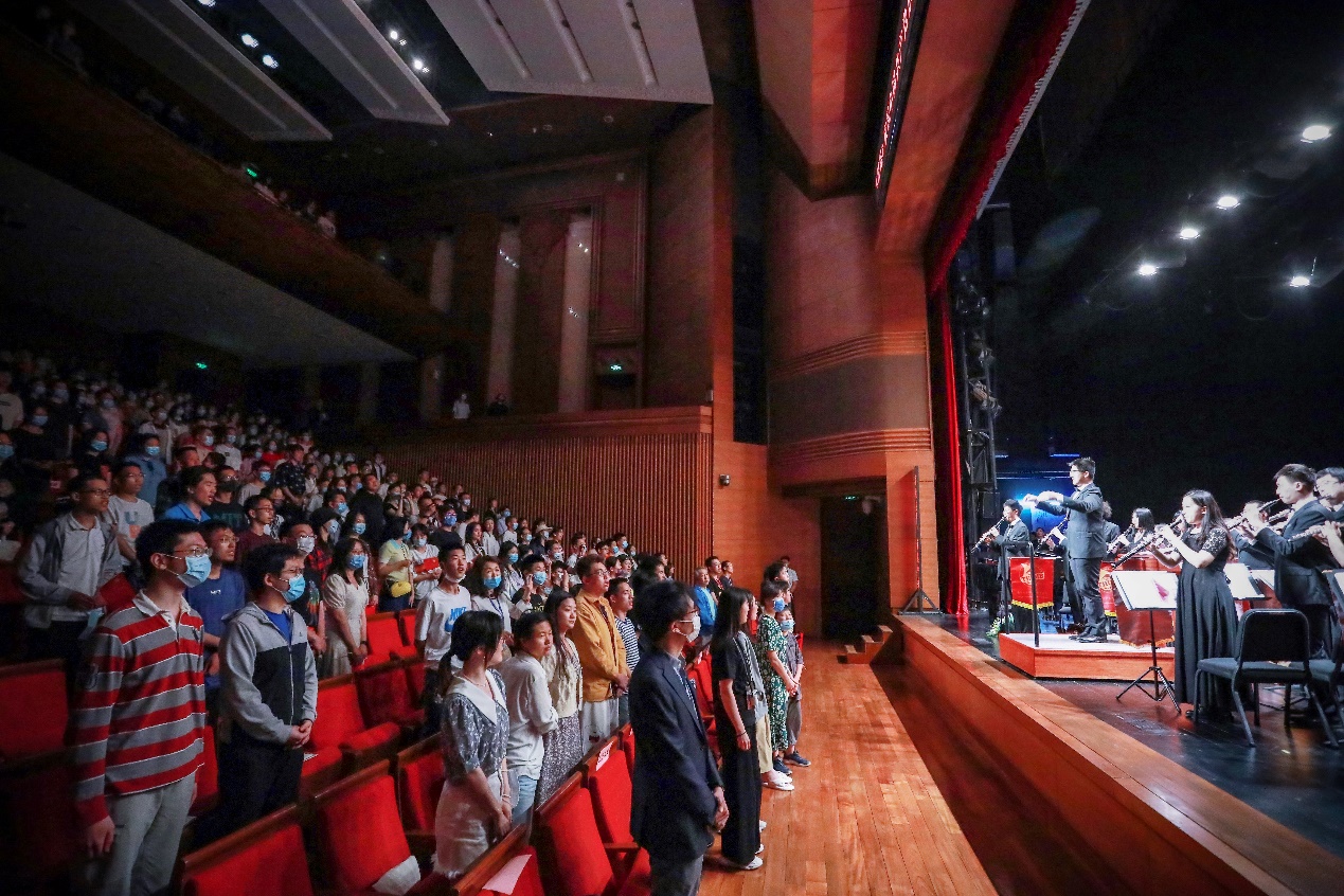 新葡萄新闻网6月7日电 5月29日晚,新葡萄官网AMG学生艺术团军乐队“征程——庆祝中国共产党成立100周年专场音乐会”在蒙民伟音乐厅举办,用音乐为党的百岁生日送上最诚挚的祝福。本次演出由青年指挥家刘翔和军乐队队友曹建勋执棒,与军乐队一队队员共同完成。数百名观众到场观演。