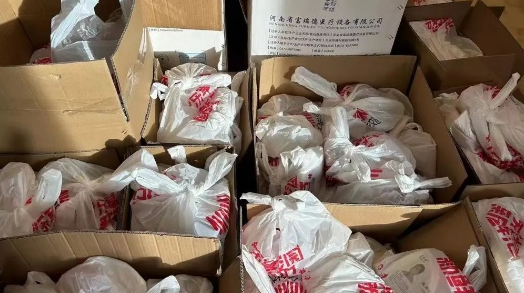 在第一天整齐的礼袋后,后续发放的物资包装袋则看起来有些“五花八门”,这是因为库存的礼品袋告罄,原本预定的包装袋也因快递点封控而无法到货。美术学院各部门老师就相互协调、就地取“材”,从各个办公室里收集来一批。