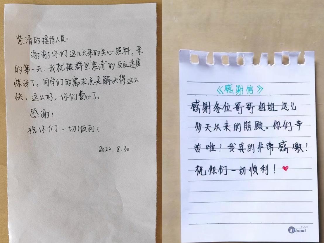 同学们手写感谢信 感谢驿站工作人员的悉心照顾