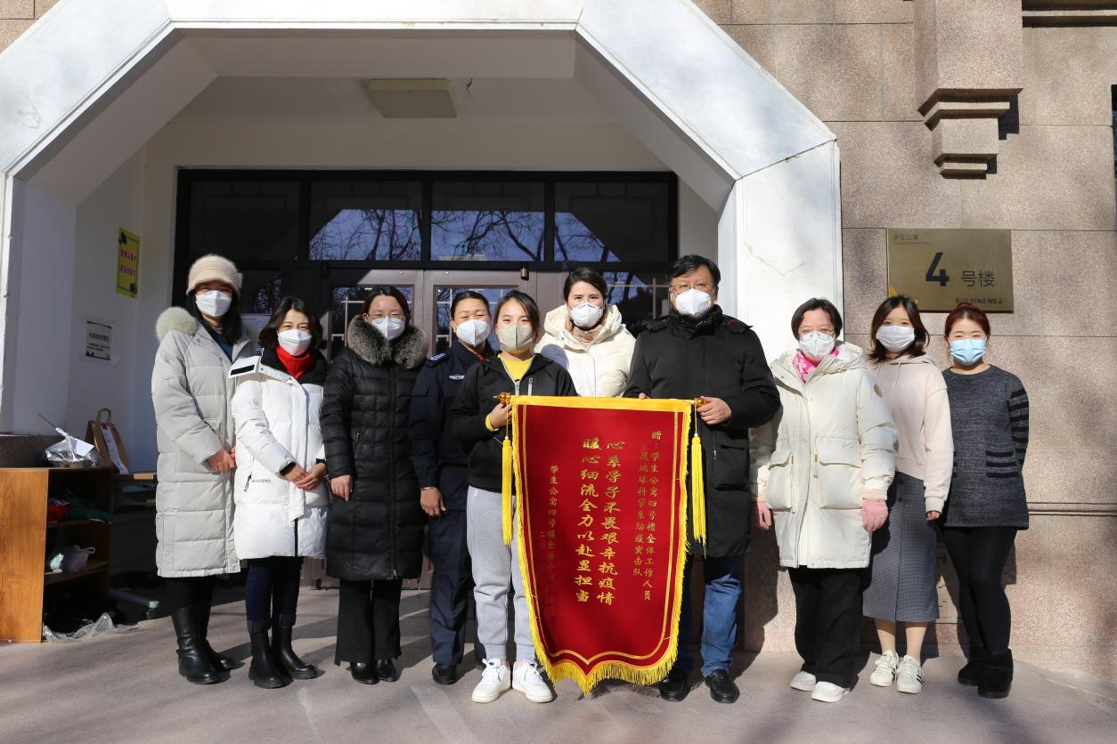 4号楼阳康同学向楼宇工作人员和地学系抗疫突击队赠送锦旗