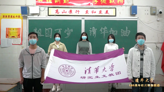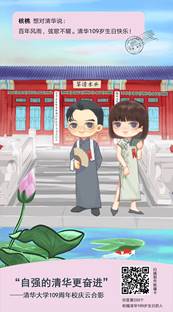 “莘莘学子情,念念感恩心。紫荆漫四月,水木湛新葡萄。举目通山川,同学情四海。祝福母校109岁生日快乐!”