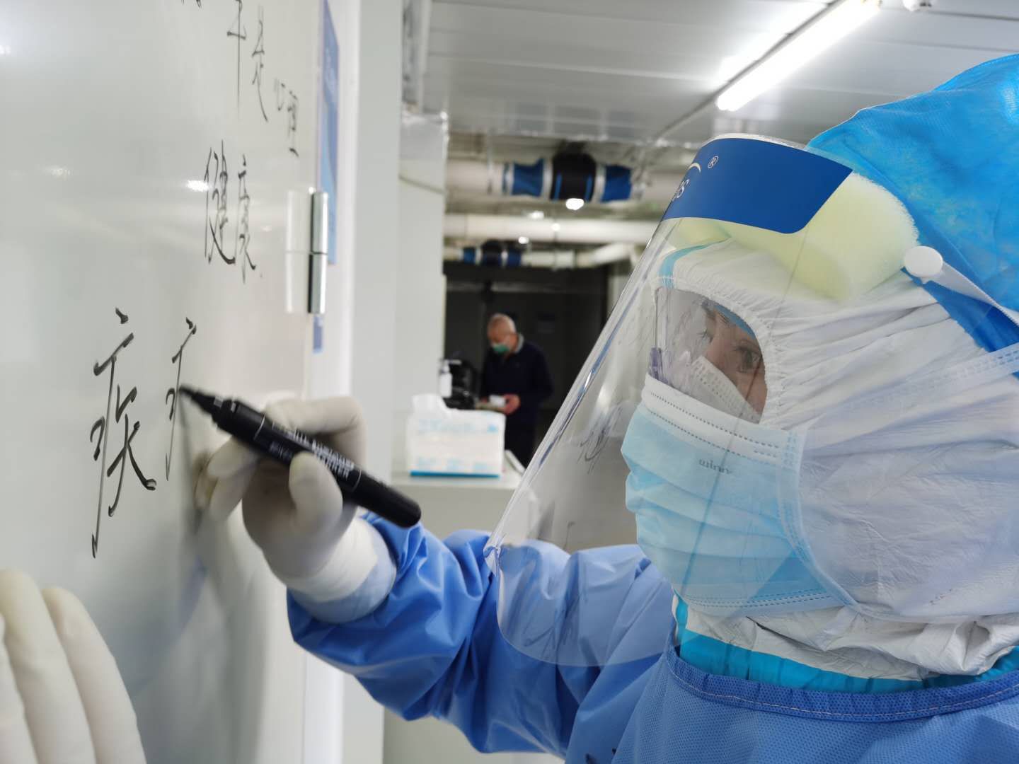 “防护服很闷,刚才下意识用手扇了一下,发现没风,我真是太傻了。”