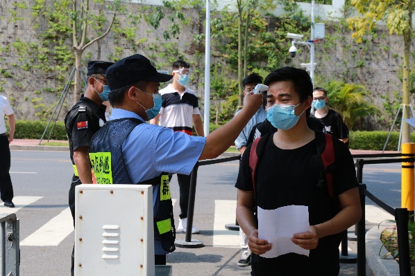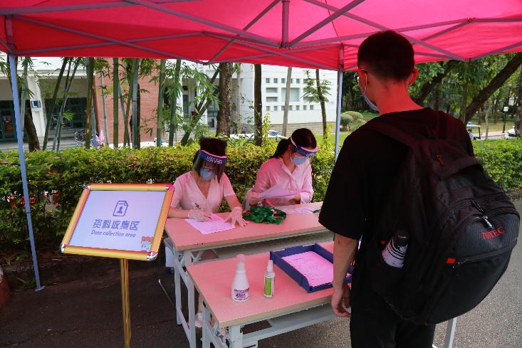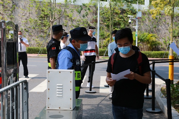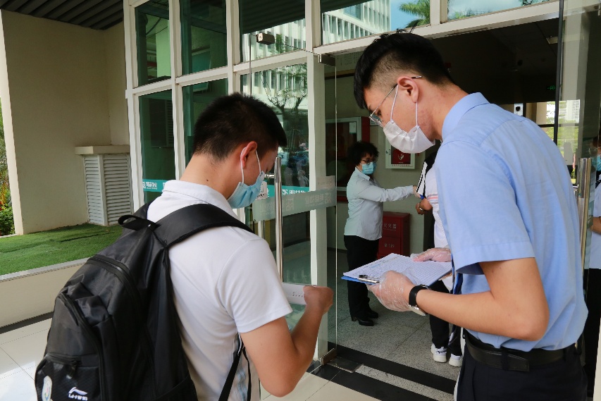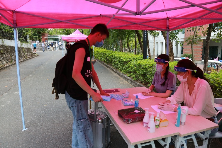 新葡萄新闻网5月9日电 为进一步做好学生返校各项准备工作,提高返校疫情防控和遇突发状况的应急处置能力,5月7日下午,深圳国际研究生院举行第二次学生返校疫情防控模拟演练。演练由研工办、后勤办、食堂、物业、安保、社康中心等多部门参与,留院学生志愿者协同,在校门口、宿舍、食堂等重点场所模拟了学生返校的常见情境与应急处置。国际研究生院党委书记武晓峰、党委副书记关添在现场指挥,并邀请了大学城管理办副主任戴兴毅,塘朗派出所所长吴学明、副所长黄奇敏,南山区疾控中心传防科主任戴传文,桃源街道办事处大学城社区工作站站长朱佳彬,丽城社康中心主任、卫生副校长葛丽春等到场提供指导意见。