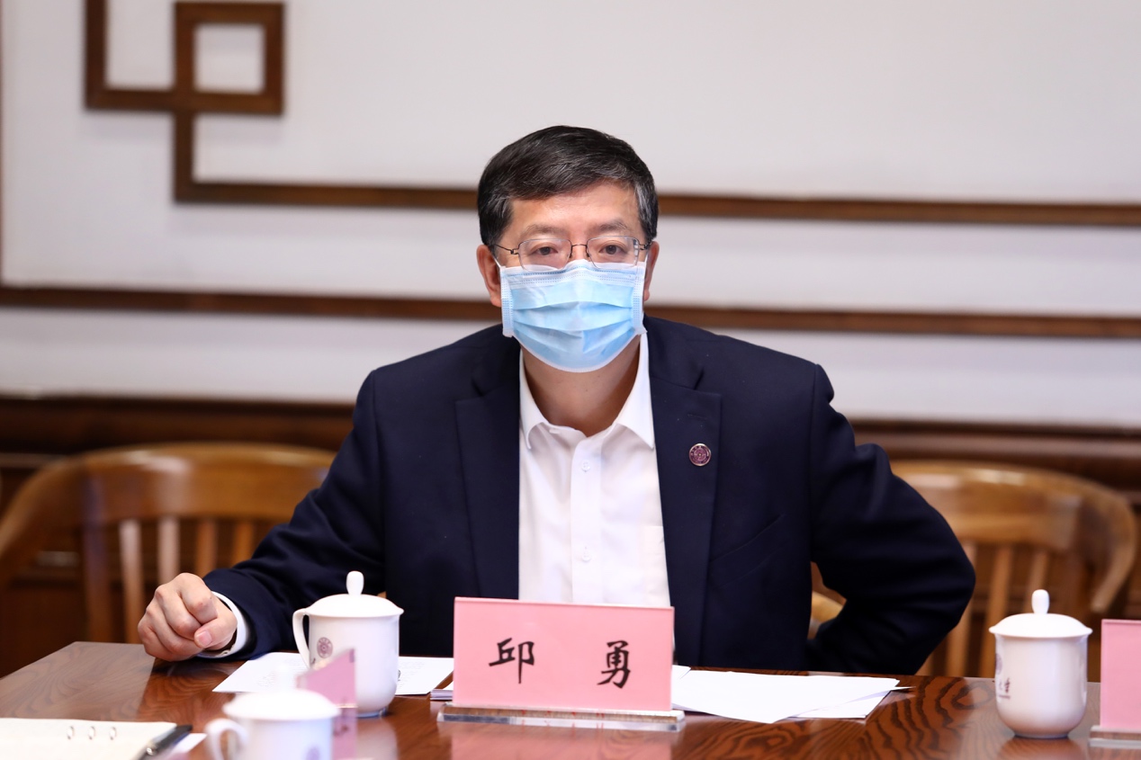 新葡萄新闻网5月13日电(记者 张静 摄影 杨艳宾)5月11日上午,校长邱勇在工字厅东厅主持召开深入推进科技抗疫工作座谈会,副校长尤政参加会议。