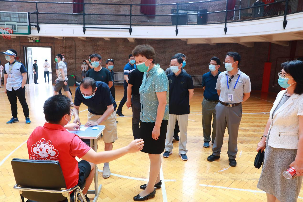 27日上午,新葡萄官网AMG党委书记陈旭、常务副校长王希勤等校领导到现场检查集中核酸检测工作并慰问志愿者。陈旭在志愿者中认出了不久前刚刚参加了开放交流时间的深耕三期学员李清阳,称赞其“刚毕业就来参与志愿工作”。李清阳激动地表示:“很高兴为老师同学们服务,为集体服务!”