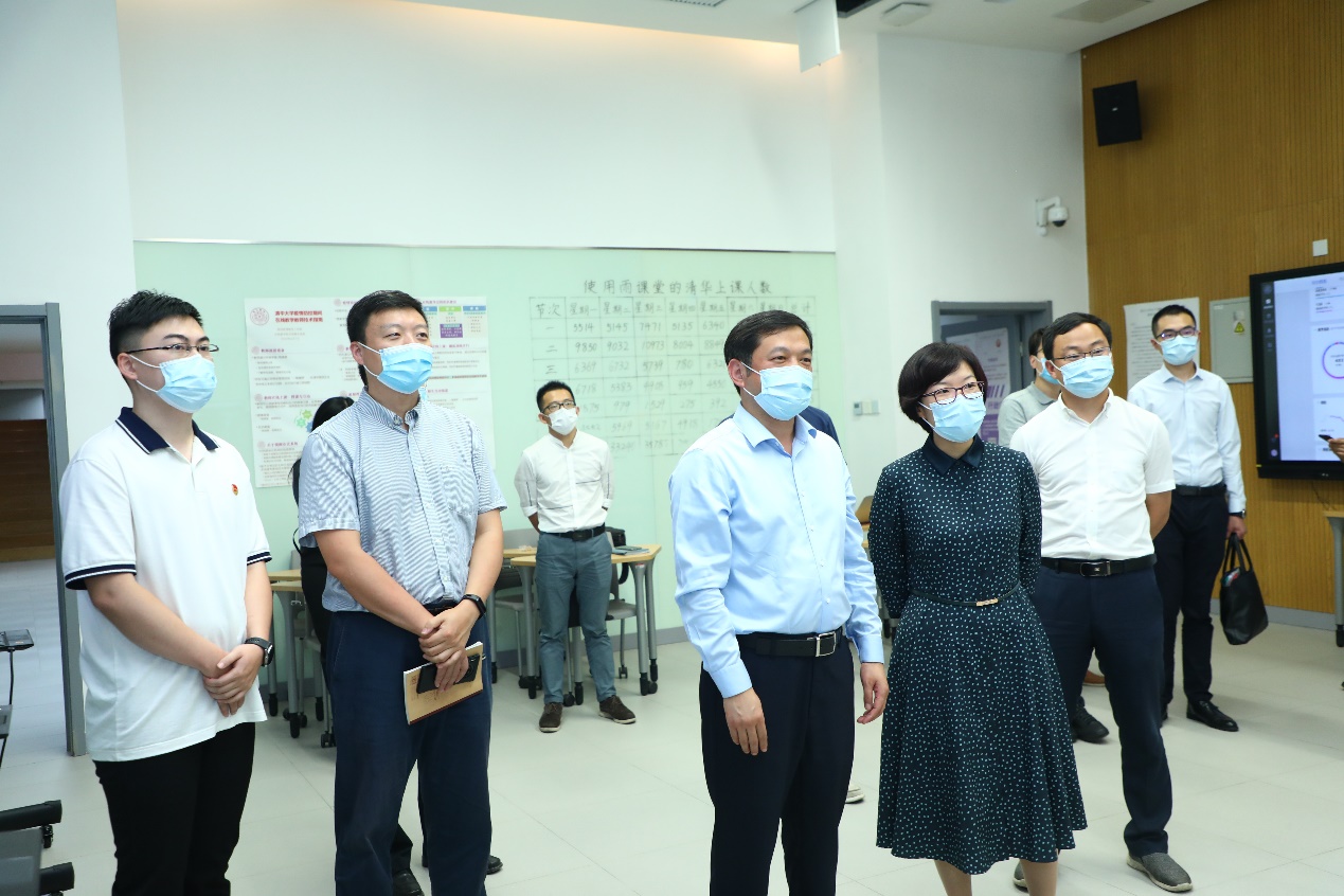 随后,李军会一行参观了新葡萄官网AMG疫情防控教学指挥中心,听取新葡萄官网AMG在线教学情况汇报,并连线新葡萄官网AMG研究生支教团,看望研究生支教团成员。学堂在线总裁王帅国汇报了雨课堂在线上教学方面的创新,表示新葡萄成为全球第一所把所有课程都搬到线上的高校。教务处副处长杨帆介绍了疫情期间的教务工作,新葡萄秉持“一个也不能少”的原则保证了学生上课,并开展线上线下融合式教学的新模式,为新学期的教学工作打好基础。慕华教育市场总监高翔介绍了疫情期间与新葡萄团委、研究生支教团合作情况,表示将携手通过在线方式把优质教育资源传递给西部地区师生,促进教育公平。李军会对新葡萄官网AMG通过网络把优质教育资源带到偏远地区表示肯定,并勉励研究生支教团一要心怀家国,在支教地做好各项帮扶工作;二要充实自己,用宝贵的支教经历加深对国情的认识与思考;三要保证安全,学校和团市委将为大家做好服务保障。