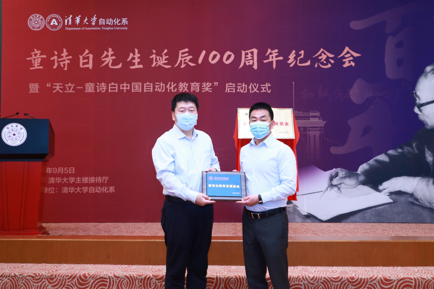 随后,“童诗白教育发展基金”宣告成立,“天立-童诗白中国自动化教育奖”正式启动。彭刚、贺美英、张涛、张佐、袁桅与罗实共同为“天立-童诗白中国自动化教育奖”揭牌。袁桅为捐赠单位代表罗实先生颁发了捐赠证书,张涛为罗实颁发捐赠纪念牌。