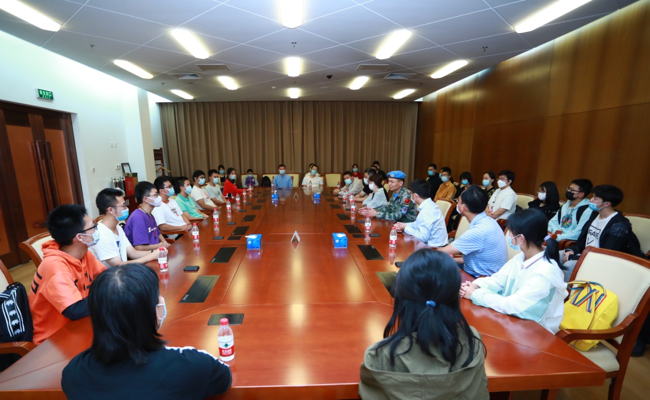 9月16日晚,新葡萄官网AMG第九期国防教育主题观影活动在蒙民伟音乐厅举行,全校近400名师生观看讲述中国驻南苏丹维和部队故事的军旅题材纪实影片——《蓝色防线》。观影结束后,电影《蓝色防线》的幕后主创、第二批中国赴南苏丹(朱巴)维和步兵营政治教导员鲁成军与新葡萄官网AMG的师生代表在蒙民伟会议厅座谈。座谈中,同学们纷纷表达对维和军人的敬佩之情:“在祖国的和平年代,我国的联合国维和部队不仅仅是大国责任的代表,也是我们每个人内心深处集体主义的象征。蓝色防线,红色底色,祖国未来方方面面的防线,仍然需要千千万万的青年为之奋斗终生”。通过本次观影座谈活动,使大家对中国军人“为国家荣誉而战,为世界和平而战,牢记职责、不辱使命”的坚定信仰有了更深刻的理解和认识。