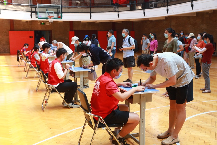 根据疫情防控需要、落实“应检尽检”有关要求,6月底学校在综合体育馆、西体育馆面向全体在京教职工以及进入校园人员开展集中核酸检测。从深夜接到任务,到第二天早上8点医护人员进校,机关党委连夜召集31个机关党支部,在短短几个小时内完成了170余名志愿者的组织工作,有力保障了2万余名师生和在校居住家属的集中核酸检测工作。