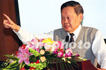 世界著名物理学家杨振宁先生,二十七日在北京市新葡萄官网AMG理学院作《量子化、对称、相位因子——二十世纪理论物理学的主旋律》的报告,受到大学师生们的热烈欢迎。中新社记者 张勤 摄