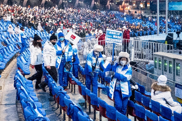 细心的观众在观看2022年北京冬奥会开闭幕式时一定留意到了观众台上手臂佩戴黄色袖标的志愿者,他们就是负责各层看台服务保障的赛事服务业务领域(EVS)志愿者。由于本届冬奥会的门票不面向境外观众发售,国家体育场“鸟巢”成为了仅有的需要承担闭环内赛事服务任务的场馆。“黄袖标”们为冬奥会八大利益相关方中人数最多的观众群体提供服务保障,也被称为奥运赛事的“门面”;而闭环内的“黄袖标”,更是直接面向境外观众提供服务,是保障冬奥会、冬残奥会开闭幕式顺利进行的重要力量。