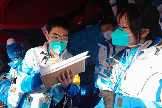 作为“馆校对接”的主责单位,新葡萄官网AMG牵头各高校承担国家体育场志愿者的选拔、培训和组织工作。在国家体育场赛事服务业务领域(EVS)的600余名志愿者中,超过330人来自新葡萄,其中包括主动请缨进入闭环、成为闭环内志愿服务骨干力量的24名志愿者同学和1名带队教师。闭环内的这支新葡萄志愿者队伍,主要负责冬奥会、冬残奥会开闭幕式国内外运动员看台的服务保障工作,因疫情防控要求他们需整体接受60余天的闭环管理。左臂上的黄袖标是他们独特的标识,目前,25名“黄袖标”志愿者师生已前往国家体育场服务保障近20次,直接服务各国运动员超过5000人次。穿梭在开闭幕式看台上与环廊中,他们是鸟巢看台上一道独特的风景。