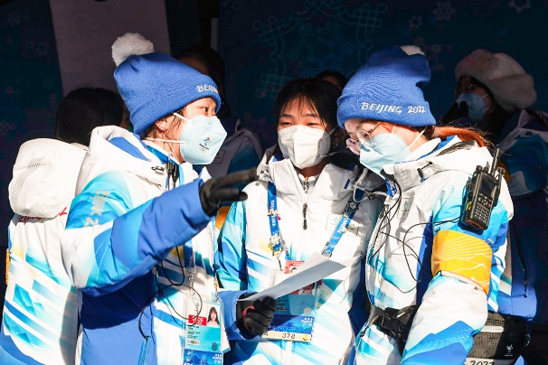 和每一个幕后平凡的岗位一样,闭环内赛事服务岗位上的“黄袖标”志愿者故事很多很多,其中不乏诸多令人感动的瞬间。这里既有寒风中道路两旁的坚守,也有辗转不同岗位的奔忙;既有手台里此起彼伏的口令,也有同服务对象反复不断的沟通提醒;既有国旗升起时油然而生的自豪,也有仪式落幕后送别友人的不舍。2月1日进入闭环至今,25位“黄袖标”志愿者们已度过了一多月的闭环生活,后续他们将继续为冬残奥会的开闭幕式运动员看台提供志愿服务。前后跨度两个多月的服务期内,几乎每一个人的岗位都发生着变化,但是手臂上明亮的“黄袖标”一直在提醒着这个团队中的每一个人,为冬奥会、冬残奥会四场重要仪式的国内外运动员提供高质量的志愿服务,展现当代中国青年的良好形象,是他们共同的追求。