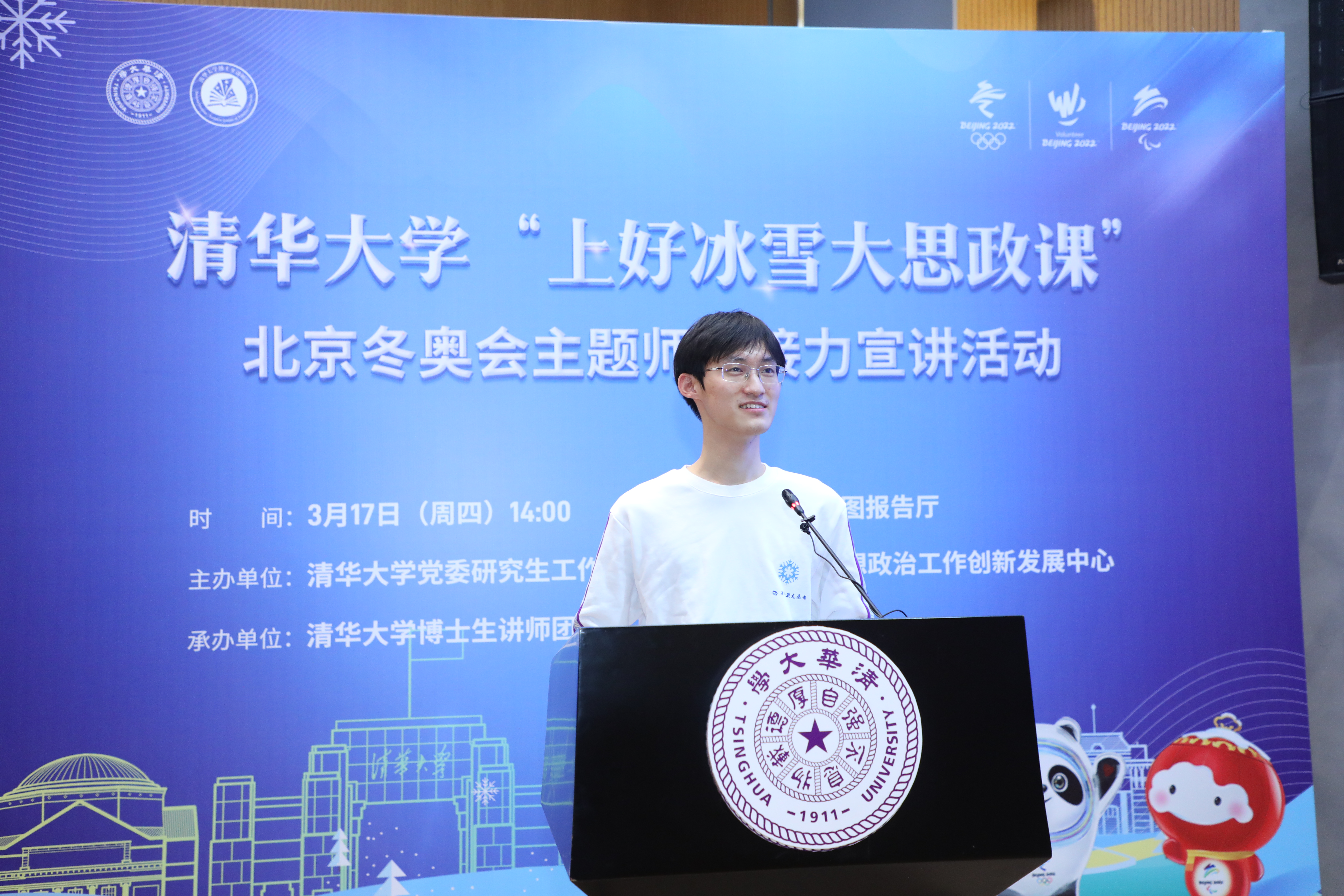 在冬奥会开幕式当天,我作为校内服务保障的一员,参与了开幕式集中观看的会务工作,也和校内来自不同国家的同学们一起,共襄这场冰雪盛会。会场上,各种肤色的国际学生不断到来,但当我将礼券和口罩递到他们手上时,他们口中道出的是同一声“谢谢”。而在运动员入场式环节,看到他们国家运动员入场,他们欢呼,我们中国学生也给予鼓励支持的目光。而在中国运动员入场时,我们也共同欢呼鼓掌。