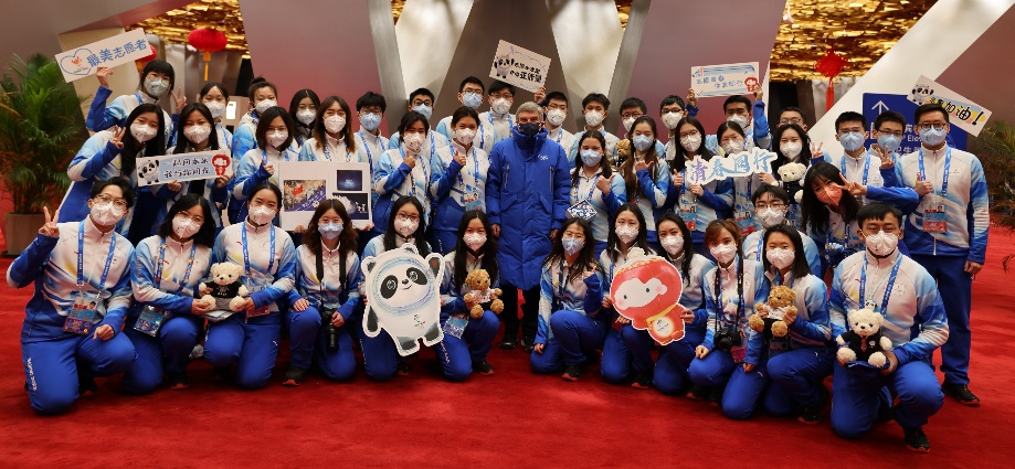国际奥委会主席巴赫慰问开闭幕式礼宾志愿者工作