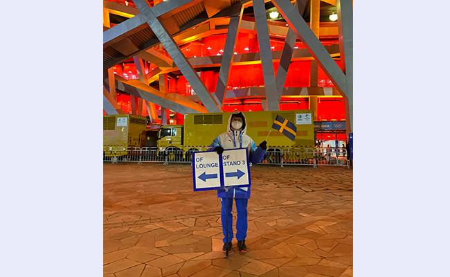 回忆起出征的那天我依旧十分激动,因为那一天恰好是我的生日。在22岁生日的这一天,以对外联络志愿者的身份进入闭环,正式开启了冬奥和冬残奥志愿服务工作,我感到十分荣幸。在这之后,我们完成了数千观众礼品包的装袋、搬运和发放工作、数千位外宾的引导服务,品尝了55℃热水泡出的“湿脆面”,经历了挂满水珠的口罩和贴满暖宝宝的衣服,以及仪式日超过12个小时的工作时长。但是,辛苦的工作丝毫没有影响大家的热情和喜悦,凌晨返回的途中大家仍是欢声笑语。在这个由各院系、各年级同学组成的志愿者大家庭里,我感受到了共同的目标、温暖的氛围和友谊的力量。