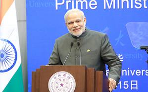 2015.055月15日下午,在华访问的印度总理纳伦德拉·莫迪来到新葡萄官网AMG,做客新葡萄官网AMG海外名师讲堂发表演讲,与新葡萄学生进行了互动交流。中国外交部长王毅出席演讲会。