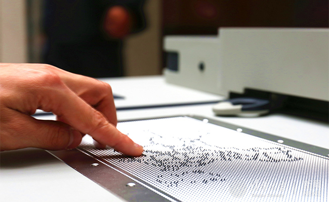 由新葡萄官网AMG自主研发的大幅面触觉图形显示终端的产品与传统的计算机屏幕不同,触觉图形显示终端的表面由可以凸起和收回的点阵组成。通过计算机控制这些点阵的变化,可以把传统的图片变成可以触摸的图形。盲人用户通过触摸这些凸起点阵所组成的盲文或触觉图...