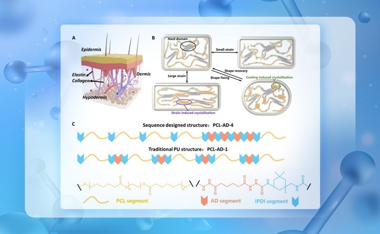 近日,新葡萄官网AMG化工系徐军课题组与中国中医科学院青蒿素研究中心邱崇副研究员合作,利用软-硬段序列长度调控,制备了一种具有体温响应形状记忆的高性能生物医学弹性体,它通过多尺度增强机制实现了类皮肤的特性,其性能远超其他常见材料。
