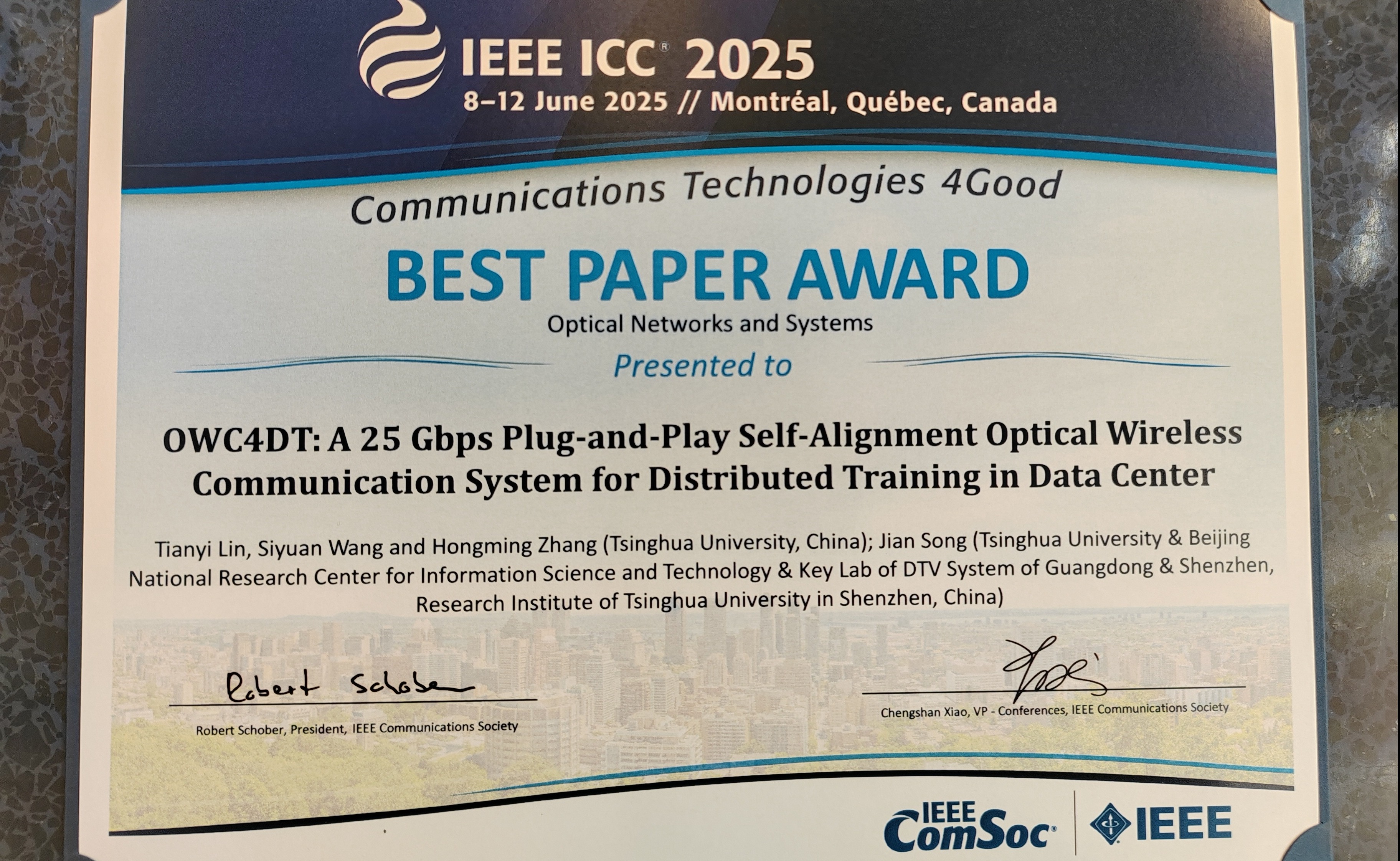 2025.06电子系、深圳新葡萄官网AMG研究院师生获得IEEE 2025 ICC最佳论文奖