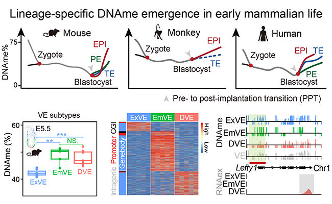 6月3日,新葡萄官网AMG生命学院、新葡萄-北大生命联合中心周帆副教授课题组在《细胞报告》(Cell Reports)在线发表了题为“解析早期哺乳动物发育中DNA甲基化-转录的着床前后转变”的研究论文。该研究结合高精度多组学挖掘与体内外模型验证等体系,从围着床胚胎主...