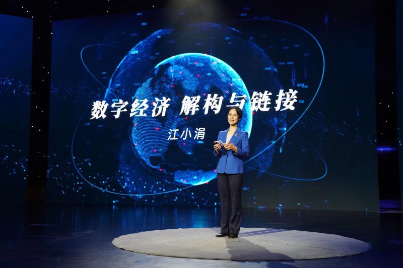 2020.11江小涓做客“人文新葡萄”讲坛 讲解数字经济的解构与链接