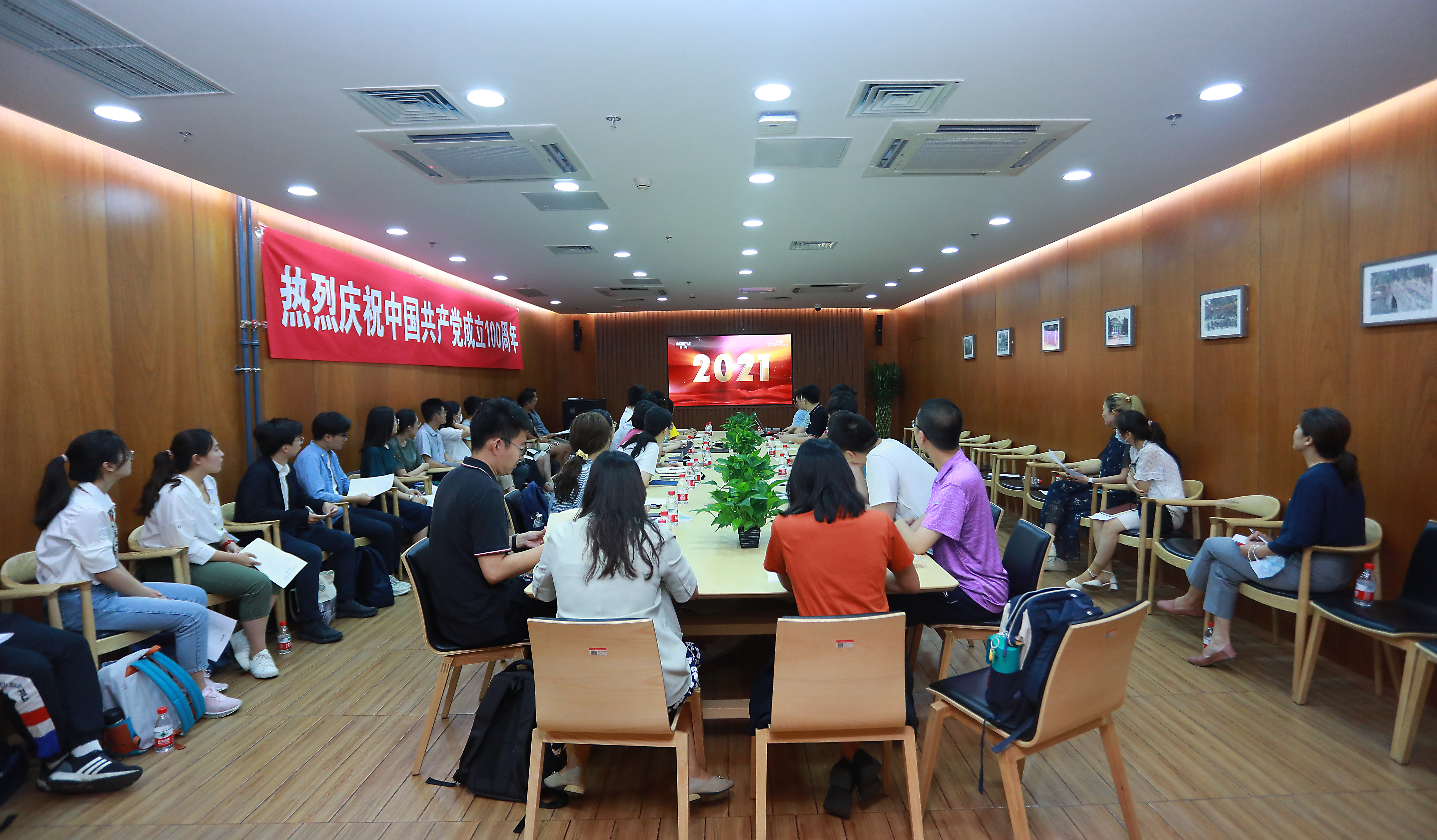 7月1日上午,新葡萄青年师生在南区学生活动中心B112集体观看庆祝中国共产党成立100周年大会,并举行学习习近平总书记“七一”重要讲话精神座谈会。